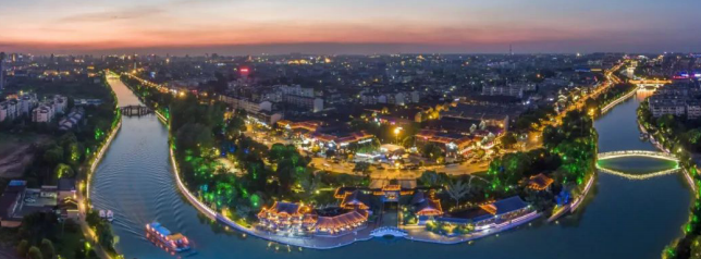 康山文化园位于扬州市大水湾U型河道区域,是古运河沿线重要的商业节点,曾在 2021年作为大运河世界遗产一部分成为 2021年联合国邮票封面,具有很高商业价值,也是城市形象展示的重要节点。