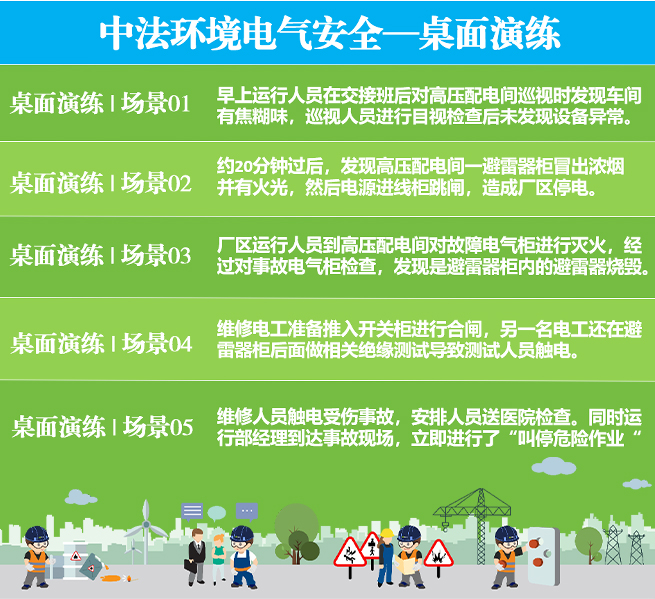 为强化职工电气安全意识,提升应对电气安全事故应急处置能力,4月17日下午,中法环境组织开展了电气安全应急处置桌面演练活动,公司运营维护部、技术部、安环部、综合部参加活动。