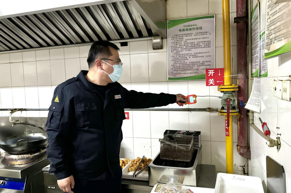 随后,能源集团一行深入到学生宿舍与食堂后厨,实地演示和讲解了燃气和用电设备的正确使用方法,并对日常生活中可能存在的安全隐患进行了现场指导。