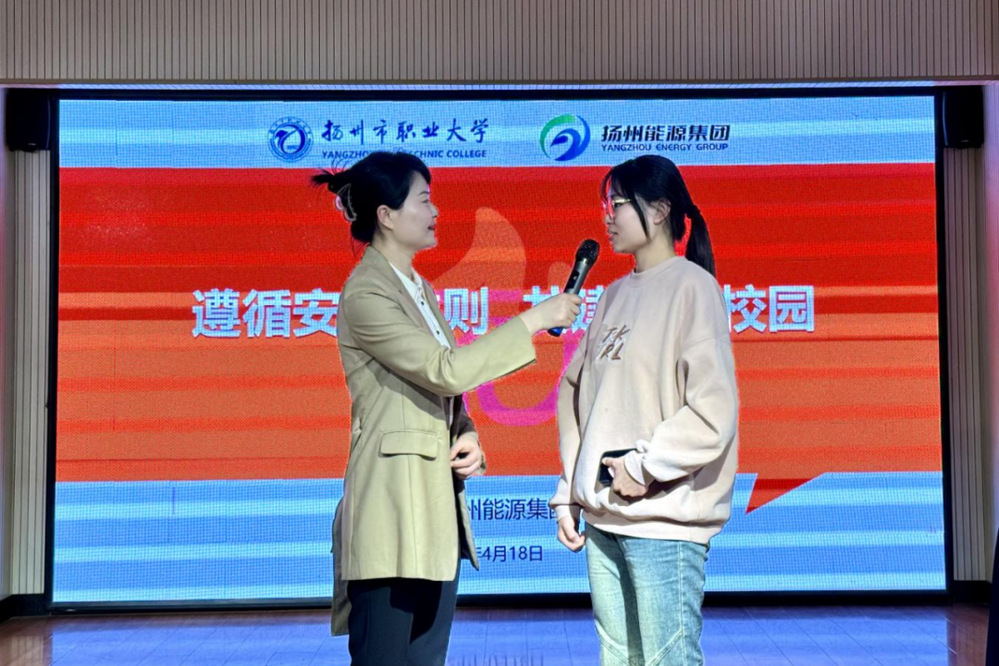安全教育警示片拉开了本次活动的序幕,触动了在场师生职工的“安全弦”。接着,讲师们进行了一场内容丰富的专题讲座,介绍了燃气和电力设备的工作原理,讲解了常见的安全隐患及发生危险时的应对措施。安全知识问答互动环节,教职工和同学们都热情参与,现场气氛活跃,将活动推向了高潮。“本次活动非常有意义,企业走进校园,学生走上讲台,通过宣传和实践让学生们认识到燃气和电力安全就在身边。”扬州职大安全科负责人对能源集团表达了感谢。