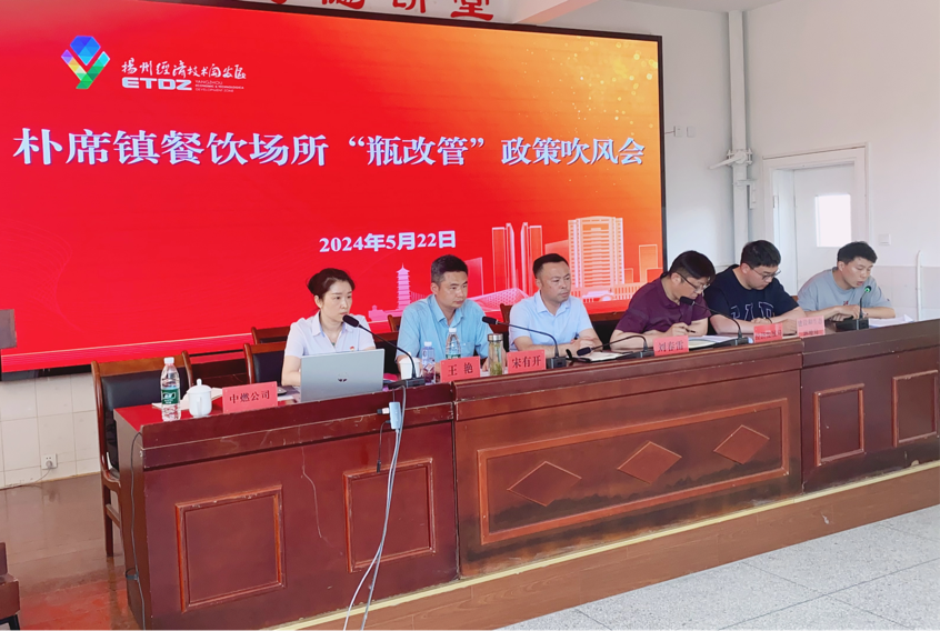 5月22日下午,扬州中燃公司相关部门赴朴席镇,会同当地政府、街道,向商户进行“瓶改管”宣传。朴席镇未在今年市政府“瓶改管”计划范围内,镇政府从安全大局出发,力争在2024年8月底前完成具备条件集中街区的改造。