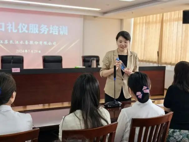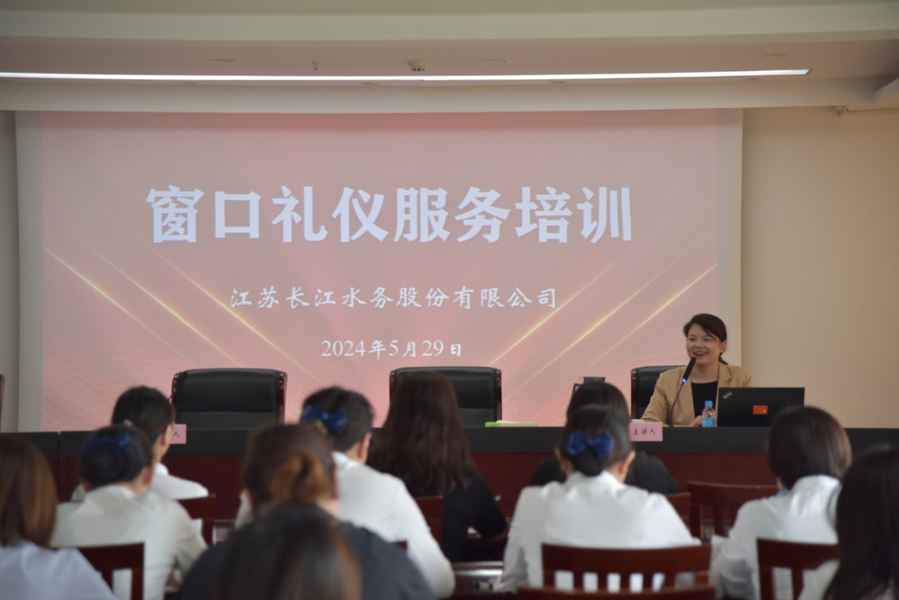 为进一步优化营商环境,提高窗口服务人员服务质量和业务水平,5月29日下午,长江水务公司特邀扬州市总工会“义工教授”、扬州市朗诵协会办公室主任夏良萍老师开展窗口礼仪服务专题培训,长江水务窗口服务部门共50余人参加培训。
