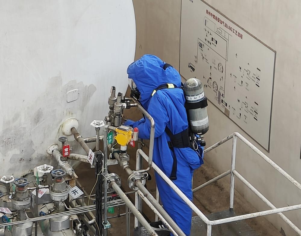 为检验突发情况下的应急响应能力和协同作战水平,交流活动后,蓝天救援队现场观摩并部分参与了针对LNG储罐区域的应急预案演练。