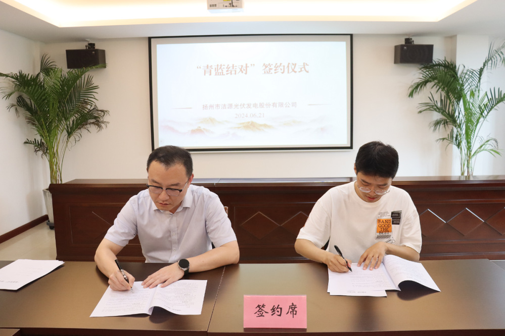 为进一步加强青年人才队伍建设,营造互学互助、团结协作的良好氛围,6月21日下午,洁源光伏公司举行“青蓝结对”签约活动,公司领导班子成员、相关部门负责人和结对师徒参加活动。