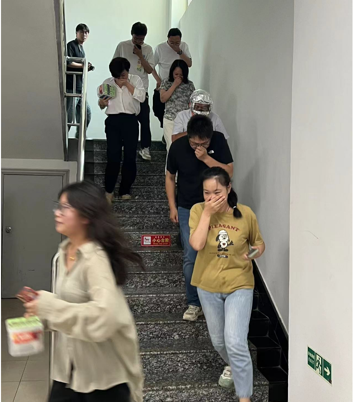 逃生疏散演练环节包括演练启动、险情警报、疏散逃生、演练结束和现场清理。整个过程现场指挥有序,演习人员服从指挥,相互提醒,反应迅速,安全撤离,在较短时间内完成应急疏散演练任务,体现出大家的良好合作精神和应急处置能力,达到了预期目的。