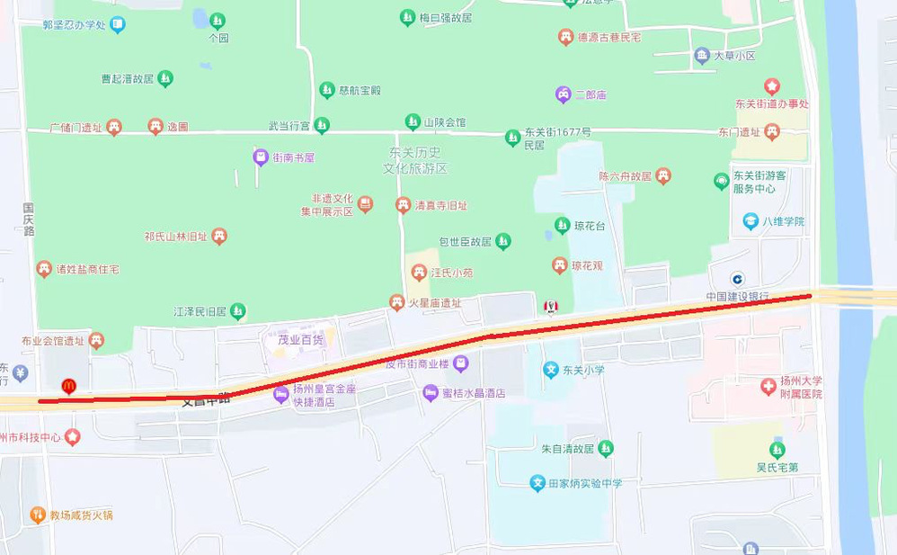 为保障双东区域积水点改造工程的顺利进行,确保施工期间的道路交通安全,根据《中华人民共和国道路交通安全法》及《中华人民共和国道路交通安全法实施条例》的有关规定,自2024年7月3日起至2024年8月31日止,对文昌中路(国庆路-泰州路)南北两侧公交车道分阶段进行占道封闭施工。