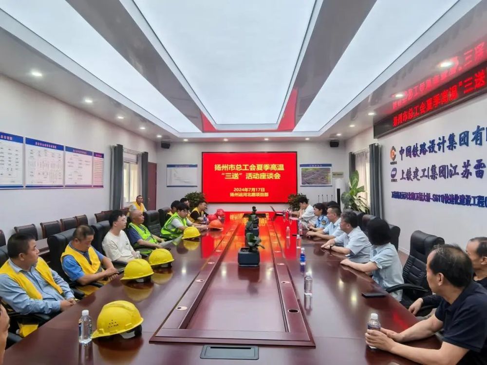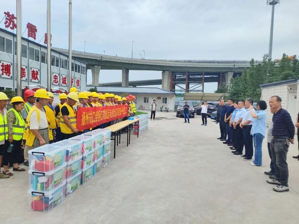 7月17日,扬州市总工会副主席杨浩带队赴万福路及运河北路(万福大桥-S611)快速化建设工程(运河北路北延段)项目部开展夏季高温“三送”慰问活动,城控集团副总经理季红军、市应急局专员郜宇、建设工会主任范华参加活动。