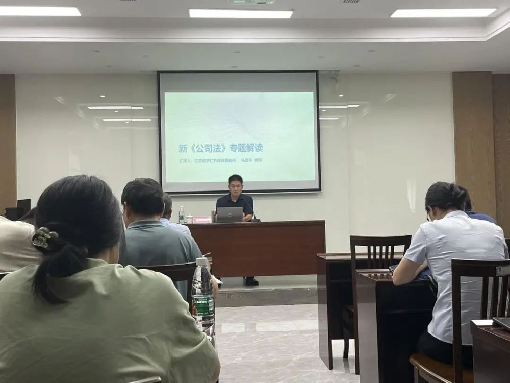 2024年7月1日起新修订的《中华人民共和国公司法》(以下简称新《公司法》)正式施行。为了系统学习、理解新《公司法》的核心内容,加强企业的合规管理,做好法律风险防控,助力企业健康平稳发展,7月19日下午,资产公司邀请来自江苏琼宇仁方律师事务所马震宇律师开展了新《公司法》专题解读培训。资产公司领导班子成员、中层干部和相关工作人员参加培训。