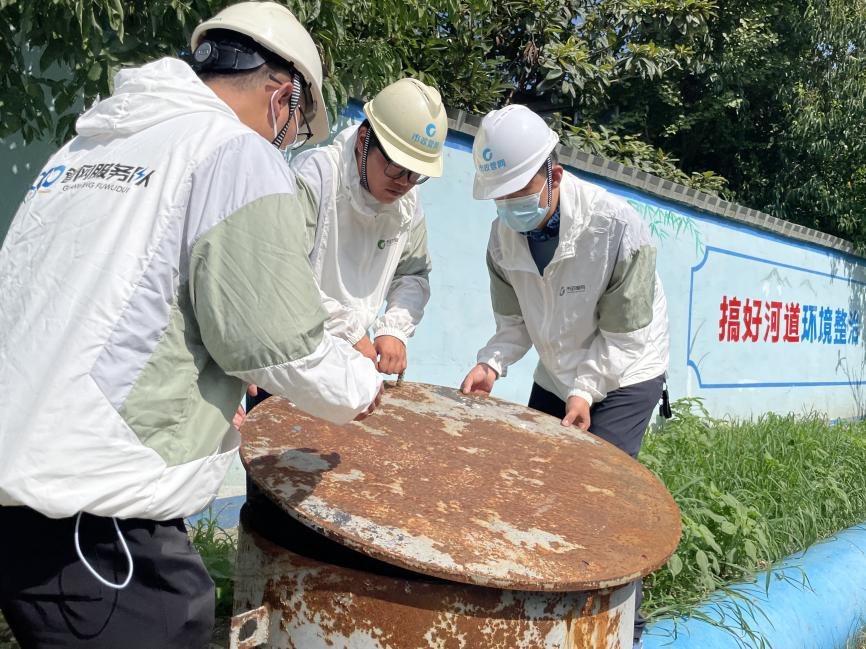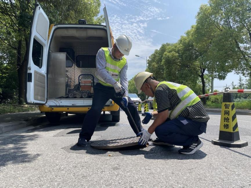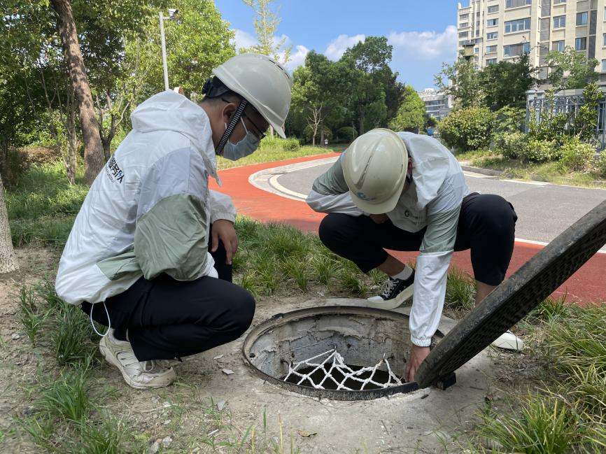 与此同时,巡检员潘玥昕、徐盛正在小区内,进行“雨污分流”达标区回头看。他们熟练地打开检查井,查看防坠网是否缺失,井内是否有污水。“一些老小区存在雨污水管道错接、混接现象,一遇暴雨就易淹易涝,我们就进行了‘雨污分流’改造” ,潘玥昕说,“改造不是终点,我们会定期‘回头看’,确保小区‘雨污分流’正常运转。”