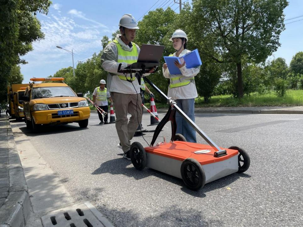 休息片刻,消退些暑热后,杨帆利用雷达探测设备,给附近路面“拍CT”。不远处,树荫下乘凉的几位居民好奇地张望,似乎想来凑热闹,可又舍不得阴凉。杨帆介绍,由于地下管网错综复杂,水流渗漏冲刷泥土会造成地下空洞,给市民出行带来安全隐患。“我们公司专门引进了先进的雷达探测设备,定期对道路进行‘体检’,及时消除安全隐患”。杨帆一路走去,后背的道道盐霜格外醒目。
