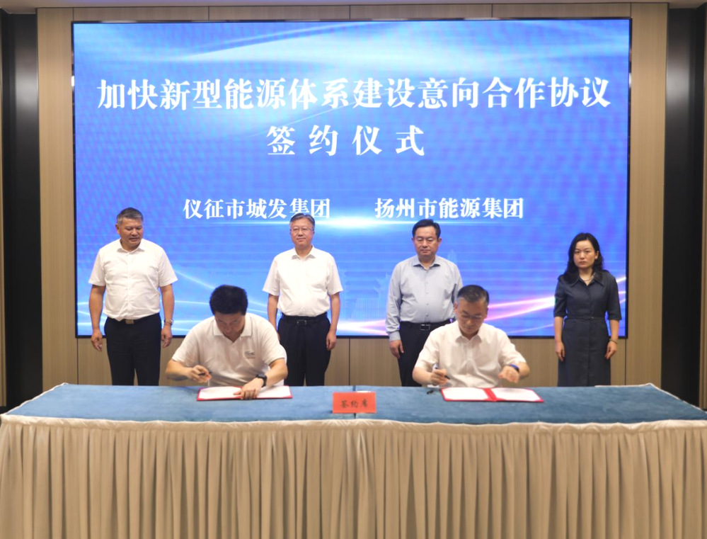 签约仪式上,仪征市副市长俞蕾与城控集团党委副书记徐飞代表双方签订了《“加快新型能源体系建设 助力经济高质量发展”战略合作框架协议》;仪征城发集团与扬州能源集团签订了《加快新型能源体系建设意向合作协议》。