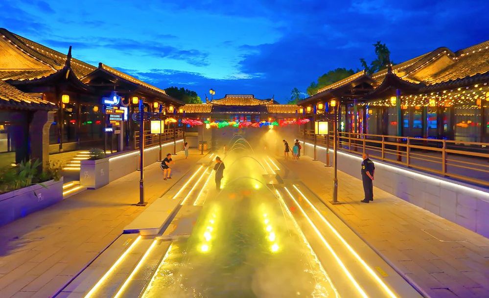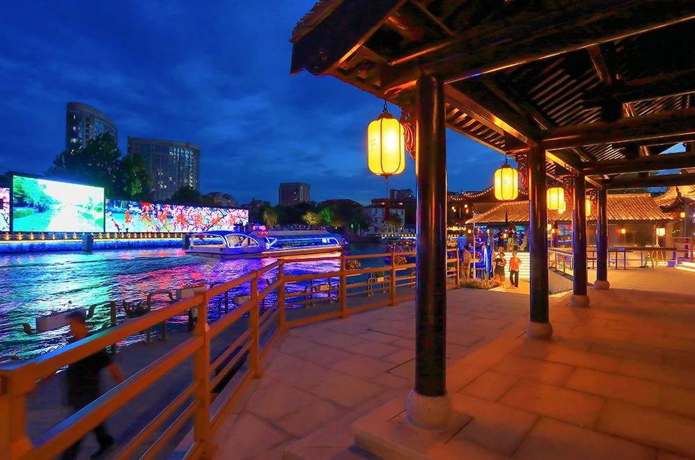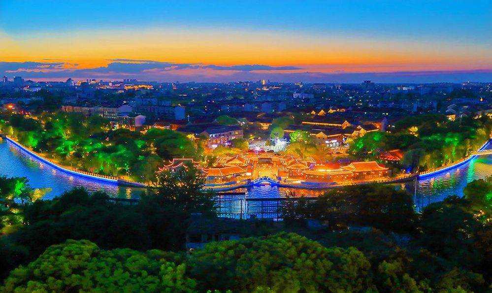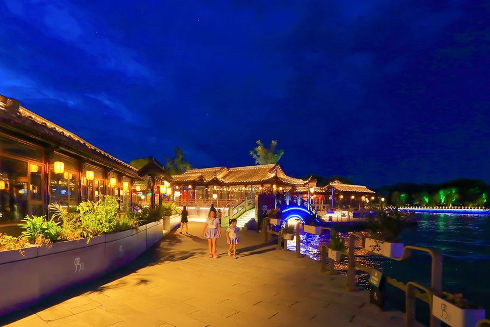 最引人注目的莫过于古色古香的建筑和华灯初上的夜景从高处俯瞰大水湾街区犹如微笑的古运河的点睛之笔、神来之笔展现了历史文化与现代风尚的交融之美