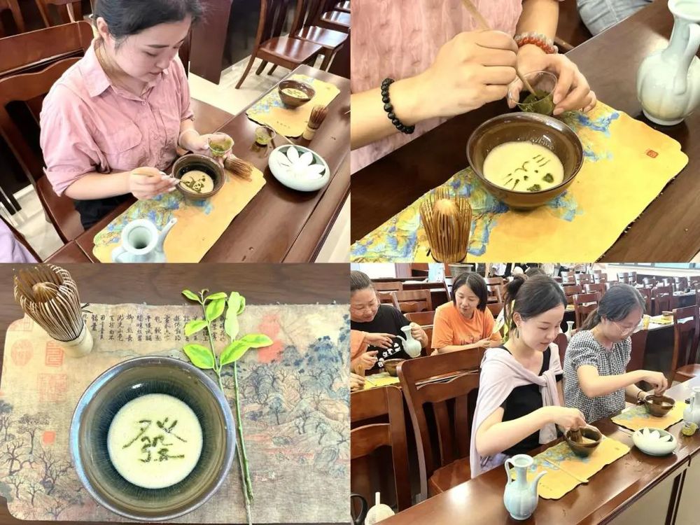 活动开始后,老师向大家介绍了宋代点茶的历史背景,带领大家了解宋人的点茶文化,接着边讲解边示范了备水、碾茶、点茶、分茶的过程。职工们被点茶的独特过程深深吸引,在老师的引导下,全身心投入到制作过程,大家平心静气,缓缓持起文雅的茶器,开始用心点茶,全神贯注感受宋韵文化的意境,看着沉浮云沫,闻着四溢茶香,须臾之间,仿佛重沐了宋代的清风朗月,沉浸其中,尽享欢愉。
