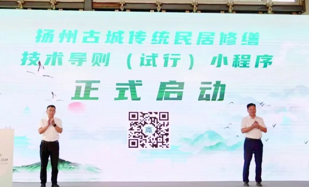 活动中,通过城市更新宣传视频和多样的研学路线的发布,嘉宾直观地感受到了扬州古城的新变化与新活力。随后,现场正式发布古城传统民居修缮技术导则小程序(试行版)为古城的修缮提供了科学规范的指导。