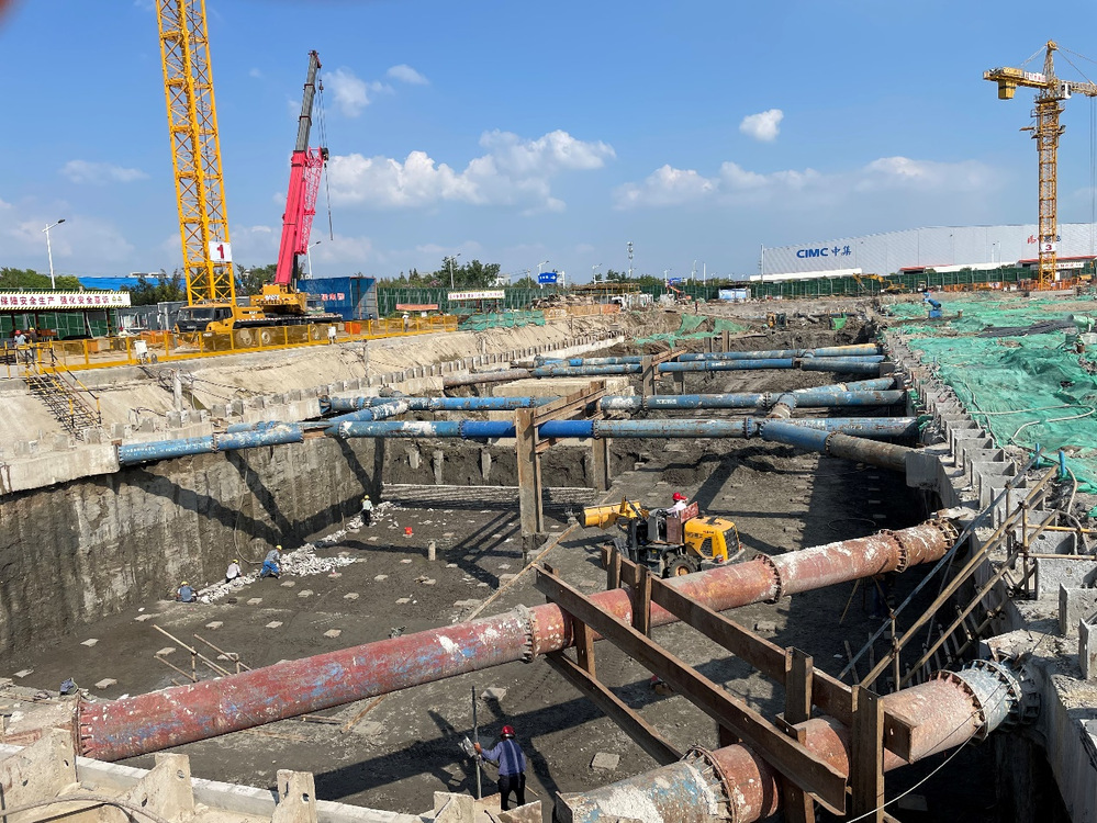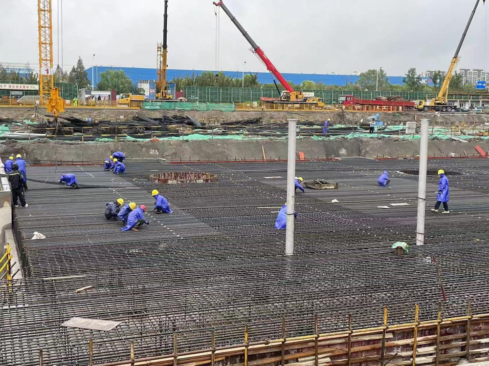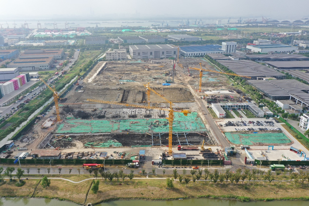 在六圩扩建项目工地现场,现场建设人员铆足干劲、不畏艰苦、争分夺秒地推进项目建设,不断刷新施工生产的“进度条”,全力以赴抢工期、抓安全、保质量,确保项目建设稳步推进。