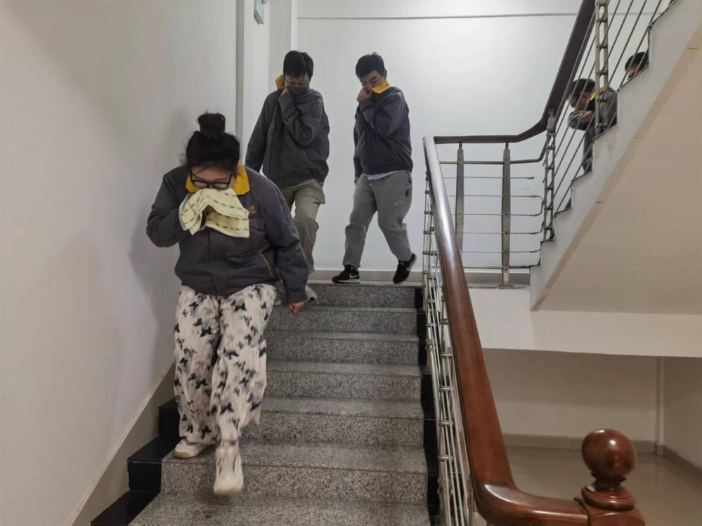 随着警报声响起,演练正式开始。全体参演人员迅速进入应急状态,按照既定的疏散路线开始疏散,在各部门疏散组织者的指挥下,全体员工用湿毛巾和衣物捂住口鼻,弯腰低姿,快速而有序地撤离办公楼,沿着指定的疏散路线向安全集合点前进。在规定的时间内到达安全集合点后,各部门疏散组织者迅速清点人数,并向演练总指挥报告情况,整个疏散过程紧张有序,按预定方案完成演练。演练活动结束后,演练总指挥做了总结和点评,巩固提高此次疏散逃生演练活动的效果。