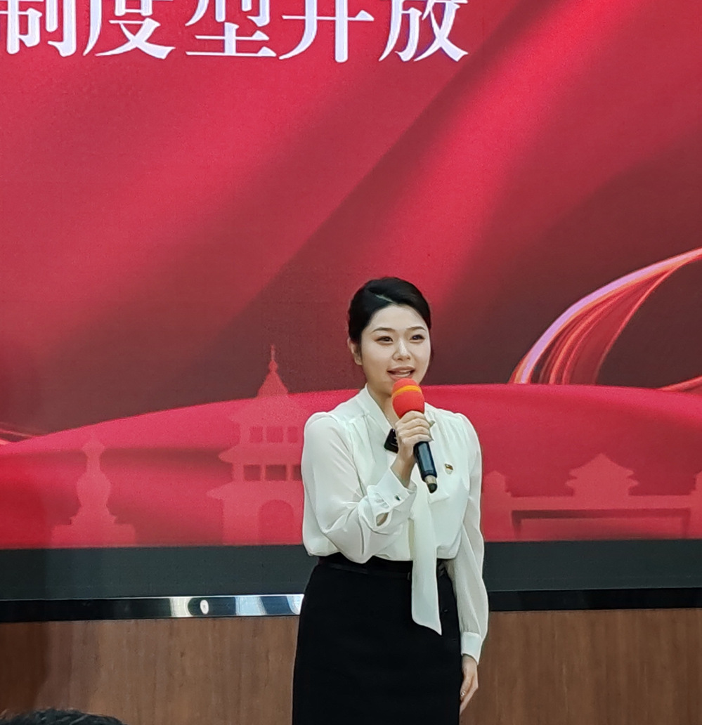 比赛分为“主题宣讲”和“即兴宣讲”两个环节。“主题宣讲”环节,12名参赛选手围绕“筑梦现代化 共绘新图景”主题进行6分钟宣讲。陈皓雅以《“河”以扬州》为题,紧紧围绕大运河原点城市建设,讲述了城控集团牢记习近平总书记殷殷嘱托,传承与发展运河文脉,积极融入大运河文化带建设,致力于城市基础设施更新、古城保护与活化利用、民生幸福工程建设,展现了城控集团与城市共生息,擘画人河相融的城市高质量发展蓝图的时代担当。“即兴宣讲”环节,陈皓雅围绕“稳步扩大制度型开放”关键词,结合党的二十届三中全会精神和城控集团稳步推进国企深化改革进行了2分钟即兴宣讲。今年以来,城控集团在市委、市政府的坚强领导下,深入学习贯彻党的二十届三中全会精神,精心组织“我是党课主讲人”活动,持续强化党建引领,推动党建工作与生产经营同频共振,以高质量党建护航企业高质量发展。