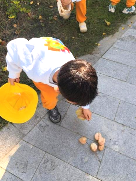 活动开始,孩子们在老师的陪伴下兴奋地穿梭于园区小道,收集着各式各样的天然材料,如五彩斑斓的落叶、形态各异的树枝,为接下来的手工创作积累了丰富的素材。