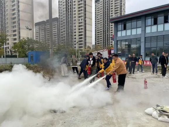 在实操环节中,参训人员实地参观了广陵区联谊消防救援站,认真有序地现场学习消防安全知识。消防队员带领全体参训人员参观了消防车,了解消防车内所配备的不同消防设备及其功能。通过“理论讲解+现场演示”相结合的方式,详细介绍了灭火器的构造、用途和使用方法,在消防队员的指导下,参训人员纷纷拿起灭火器,模拟火灾现场进行灭火操作。