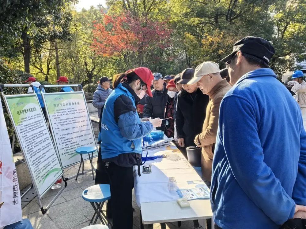 活动现场设立了多个服务台,服务台前都围满了前来咨询和办理业务的居民。市民卡公司的工作人员耐心解答居民关于市民卡功能、充值、挂失补办等办理事项,为居民提供市民卡保护壳以旧换新服务。中燃公司的工作人员向居民发放安全用气宣传手册,详细讲解燃气使用的注意事项,为居民提供免费的上门燃气设备检查服务,保障居民的用气安全。长江水务的工作人员为居民解答水费缴纳、水质检测等疑惑,并向社区居民发放包裹水管的泡沫隔热垫,帮助做好水管的保温,并现场安排人员为居民测试水压,维修自来水管。供热公司的工作人员们向居民发放安全知识手册和宣传生活垃圾分类常识,名城公司的志愿者向居民免费提供切干丝服务。