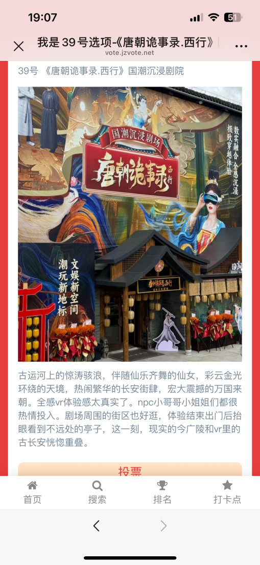 此次网选分为“美景、美宿、美味、美地、美物、美韵”6大板块,经过五天的网络投票环节,扬州大水湾获得了“美地”板块第一名、唐朝诡事录VR剧场获得了“美韵”板块第一名、南河樂宴在“美味”板块也获得靠前名次。