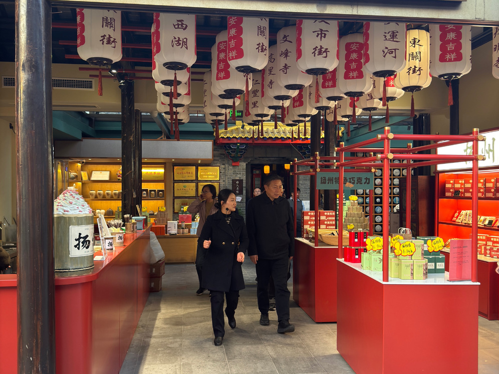 李保国一行沿东关古街,实地察看周边风貌,了解街区历史沿革、文旅资源保护开发及公房活化利用等情况,深入冬荣园、谢馥春、街南书屋、扬州漆器厂、“花筑”民宿等店铺商家,听取情况介绍,详细了解街区招商、老字号传承、文商旅产业融合及资产活化利用等所取得的成效,并对扬州城控集团坚持保护与利用、改造与复兴、传承与发展相结合理念,扎实推进古城项目建设和经营管理方面取得的成绩予以了充分肯定。