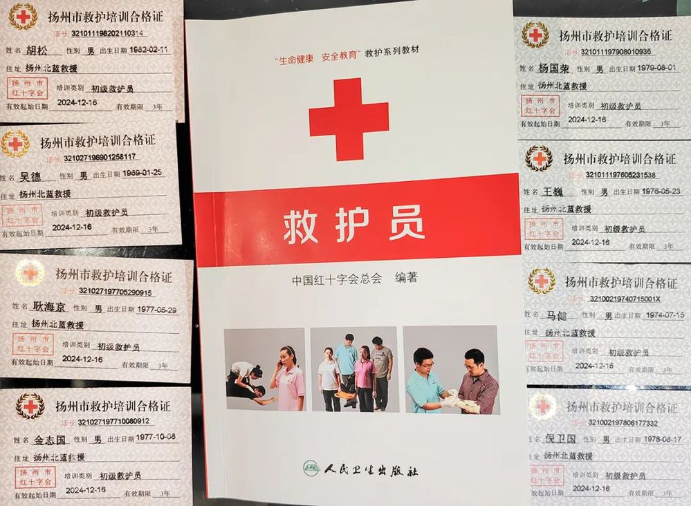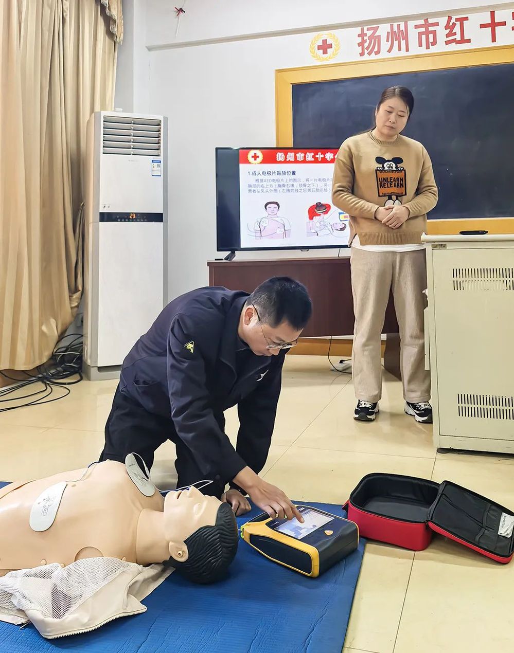 本次培训采取理论授课和实操练习相结合的方式,由扬州市红十字会卫生培训中心师资团队进行授课。培训历时8个课时,课程涵盖了心肺复苏(CPR)、止血包扎、骨折固定、海姆立克急救法、自动除颤器(AED)使用等急救知识。培训过程中,扬州中燃志愿者认真学习了解医疗救护知识,在专业老师指导下,逐一进行互动体验和研习。扬州中燃公司8名志愿者全部通过理论和实践考核,取得扬州市红十字会颁发的初级救护员合格证。