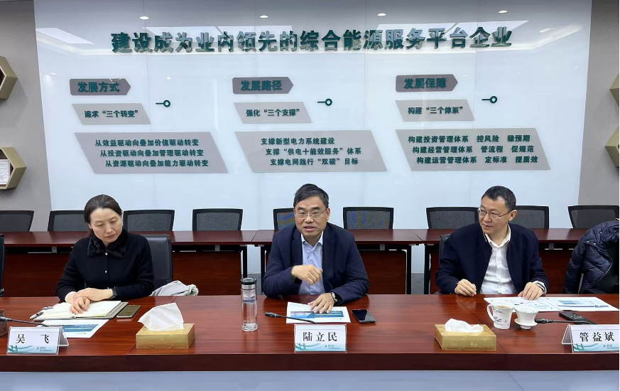 座谈会上,陆立民对能源集团一行的到访表示欢迎,并分析了新能源发展的形势。陆立民指出,要立足市场需求,坚持实践导向,确保能源安全,同时为用户节约成本,积极建设专业化队伍,整合新能源及传统电力市场资源,以虚拟电厂为抓手,推动新能源产业高质量发展。
