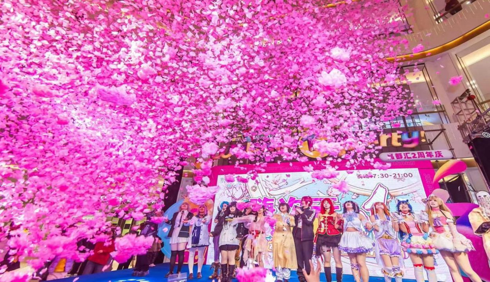 在嘉都汇二周年之际,商场推出了超值团购券、欢乐刮刮卡、大屏抽奖、公仔墙自拍打卡等促销满赠活动。庆典当日,活动精彩纷呈,客流络绎不绝,日销售额再度攀升至新高点。庆典第一天既有民间公益活动,也有本市多家幼儿园的汇报表演,更有引领潮流的二次元漫展,最吸引关注的浪漫花瓣雨当晚8点整准时从天而降,给现场每一位亲历者带来惊喜与震撼。你方唱罢我登场,一整天精彩纷呈的节目内容,满足了周边居民各个年龄段的需求,大家共赴嘉都汇庆生的浪漫之约。