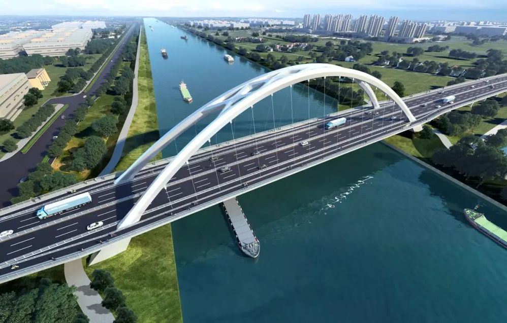 华扬东路跨京杭运河大桥建设工程采用双向六车道标准,设计速度为50km/h,全长1.92km。其中,新建桥梁1座,主桥采用200m提篮拱桥,引桥采用混凝土连续箱梁。项目总投资约4.5亿元。华阳东路是扬州城区规划“二十五横十七纵”主干路网的关键一环,也是连接经济开发区与广陵区的交通命脉。大桥建成后,将有效缓解区域交通拥堵状况,促进区域间经济往来、资源共享与协同发展。
