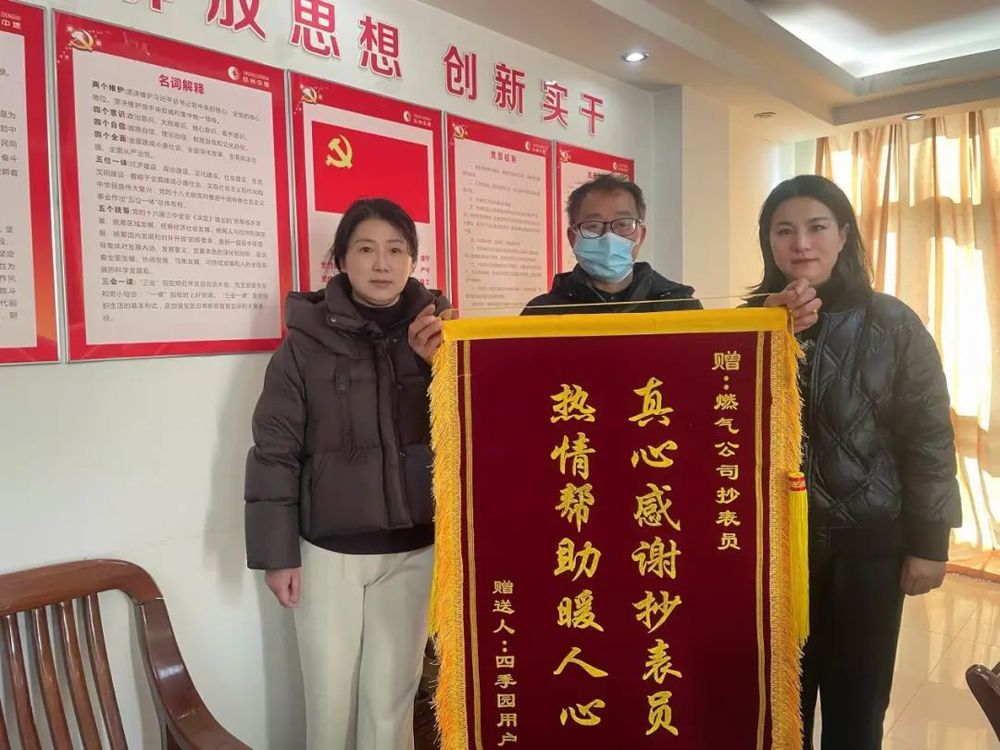 2月24日,扬州市区四季园小区天然气用户睢先生将一面印有“真心感谢抄表员 热情帮助暖人心”的锦旗送到了扬州中燃公司,对客服部抄表员郭兰及时救助独居老人的善行义举表示衷心感谢。