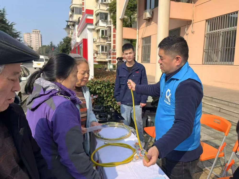 宣传咨询,实物讲解。在社区广场,蓝焰卫士设立了宣传咨询台,通过实物展示、宣传单页发放、一对一讲解等形式,重点介绍了超期燃气具安全隐患、燃气安全“四件套”——不锈钢波纹管、自闭阀、燃气报警器、物联网表的功能和使用方法。活动当天累计接受咨询40余次,发放宣传手册80余份。