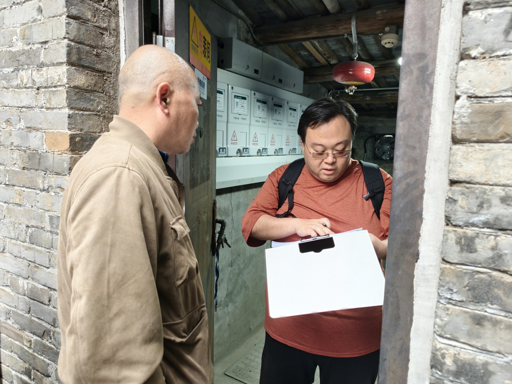 检查组对街区电表间、电房进行了逐一检查,主要检查供配电系统运行是否正常、室内散热风扇、照明设施是否能正常运转、有无巡检记录、绝缘防护装备是否齐全等。检查组同时宣讲了电气安全使用常识,提醒作业人员操作时要规范作业,定期检查电表空开是否完好、线路是否规整、现场有无异味等。对检查中发现的隐患,名城公司将督促相关单位积极整改到位,为商户和游客营造一个安全、稳定的旅游环境。