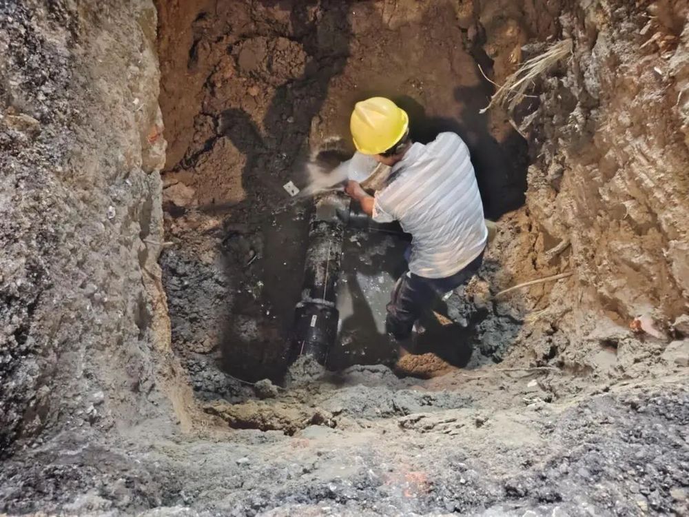 经过抢修人员轮班值守、持续攻坚,最终确定某段三通连接处存在长约十公分的裂纹,系导致积水反复倒灌的根本原因。抢修队伍随即展开连夜作业,克服环境复杂、时间紧迫等困难,于次日居民用气早高峰前顺利完成管道修复,并恢复正常供气。