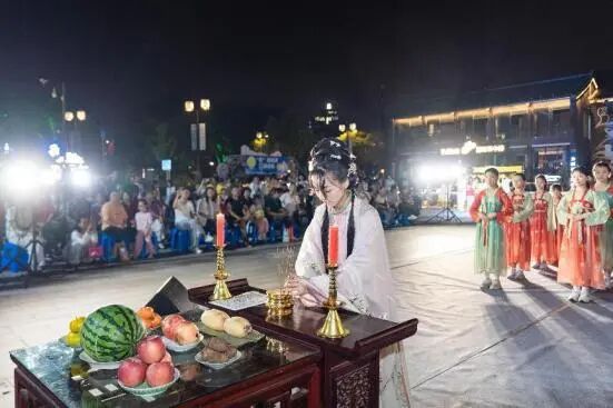 “礼”:传承文脉:庄重的“拜月祈福仪式”将活动推向高潮。身着汉服的社区代表依循古礼祭月,祈求风调雨顺、家国安康,让传统礼仪在当代焕发生机。