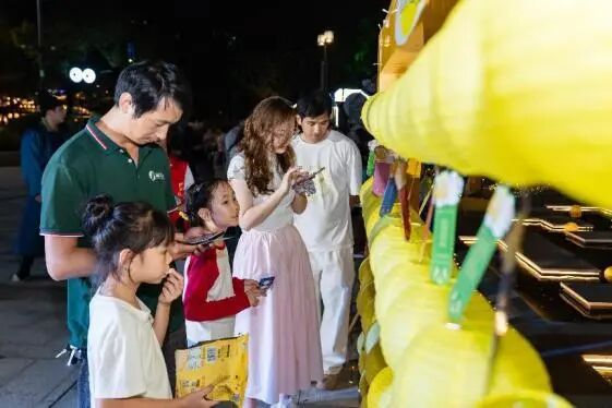 “诗与书”:亲润墨香:诗韵长廊内,百余盏手工灯笼下悬挂诗词谜题,字里行间尽藏古韵;“飞花令”挑战区更成文人雅聚之地,以“月”“秋”为令,佳句频出,尽显中华文字之美。