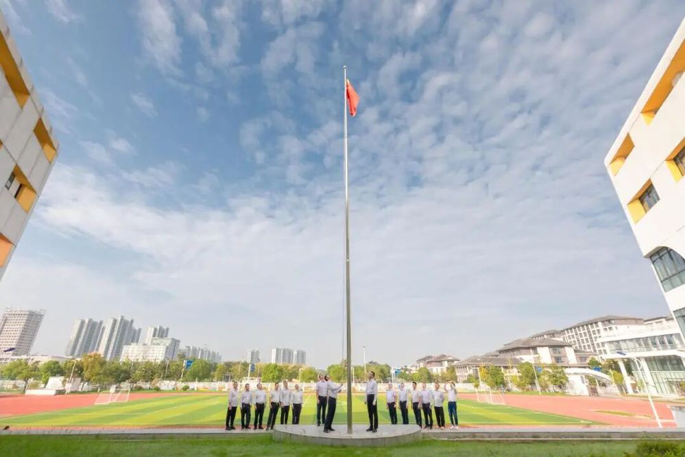 上午8时整,仪式正式开始。三名护旗手迈着铿锵有力、整齐划一的步伐,护卫着鲜艳的五星红旗走向升旗台。“向国旗——敬礼!”的口令响起,伴随着雄壮激昂的《义勇军进行曲》,五星红旗迎风展开,在全场人员深情的注目礼中冉冉升起,直至顶端迎风飘扬。这一刻,庄严而神圣,浓浓的爱国情怀和自豪感在每个人心中油然而生。