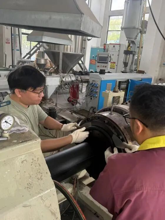 荣誉的取得,源于日常的坚守与付出。国庆中秋假期,当人们沉浸在节日的闲暇中时,长江塑管生产车间内机器轰鸣、人声鼎沸,全体员工正为保障海德公园、月亮圆、高邮三大民生项目的管道供应全速运转。