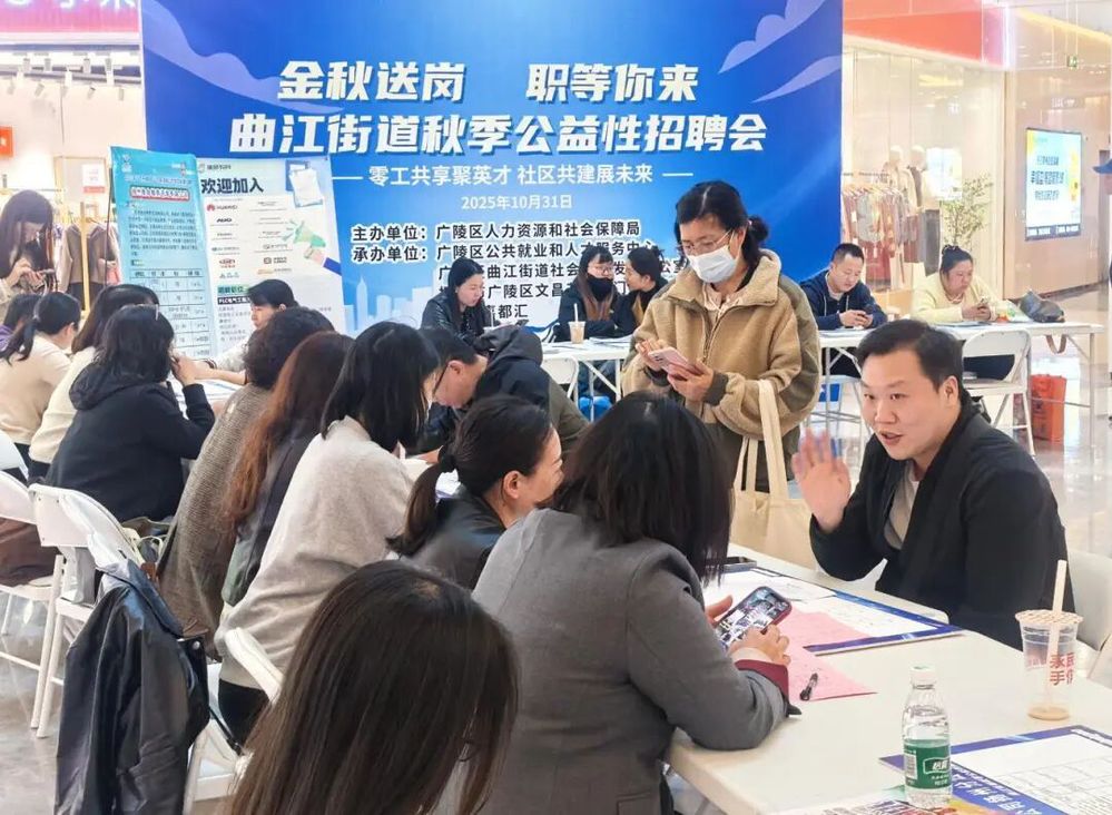 10月31日下午,嘉都汇商业邻里中心联合广陵区人社局等部门共同支持的“金秋送岗 职等你来——零工共享聚英才 社区共建展未来”秋季公益性招聘会,在一楼中庭圆满落幕。
