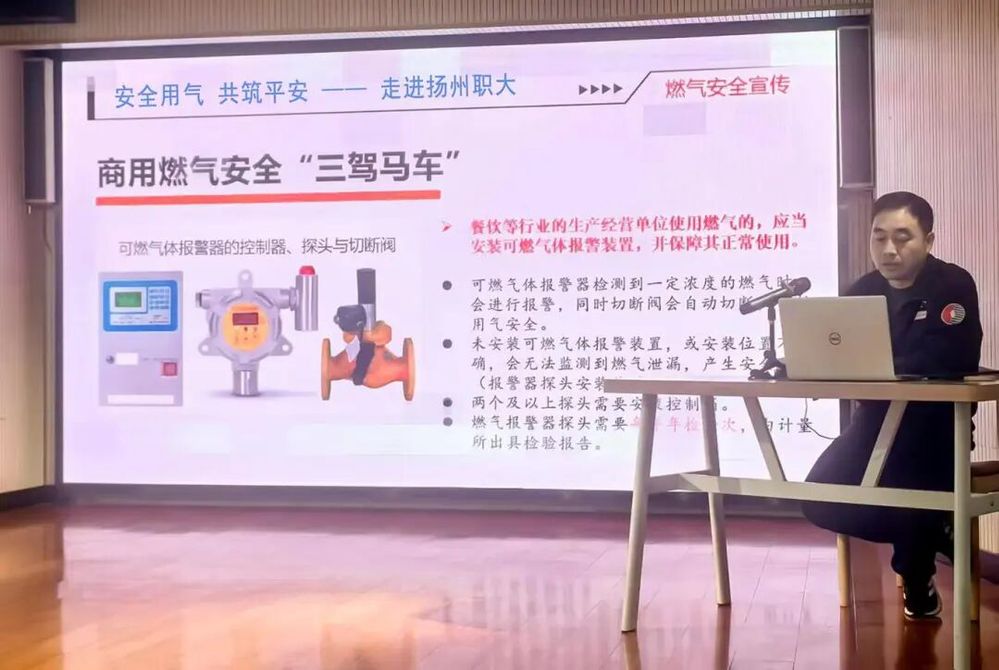 为进一步强化校园燃气安全管理,切实提升后勤服务人员的安全意识与应急处置能力,近日,扬州中燃公司联合扬州职业技术大学组织开展燃气安全专题培训。扬州职业技术大学后勤保障处相关负责人与60余名一线工作人员参加培训。
