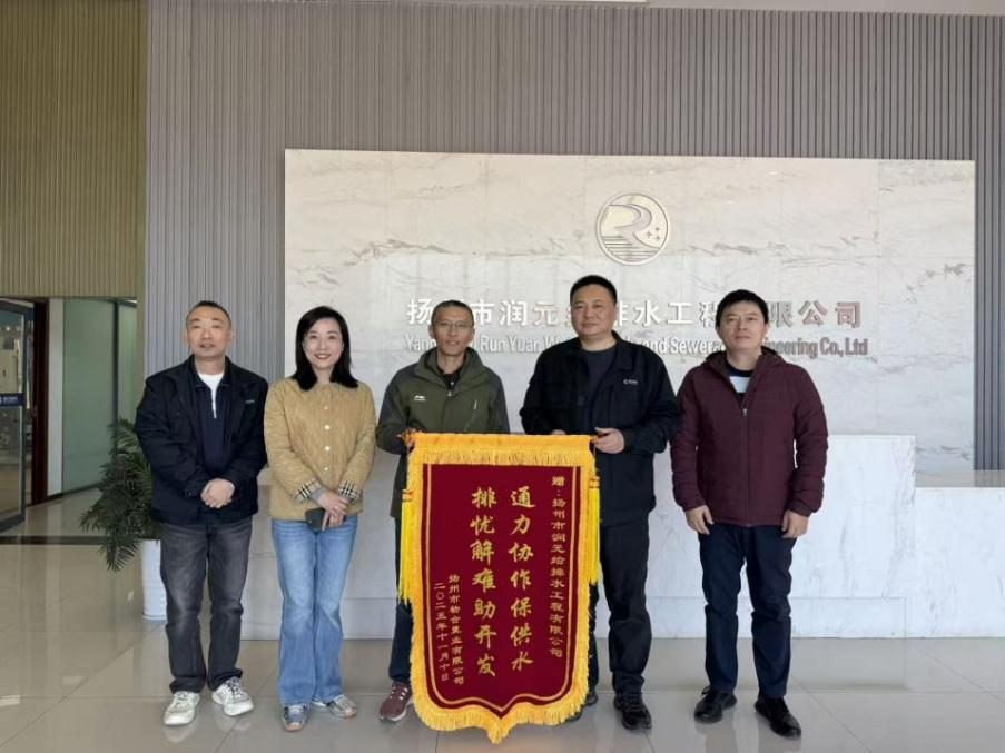 11月19日,扬州市物合置业有限公司将一面绣有“通力协作保供水,排忧解难助开发”的锦旗送到长江水务润元公司工作人员手中,对润元公司高效、优质、便捷、暖心的服务表示衷心感谢和认可。