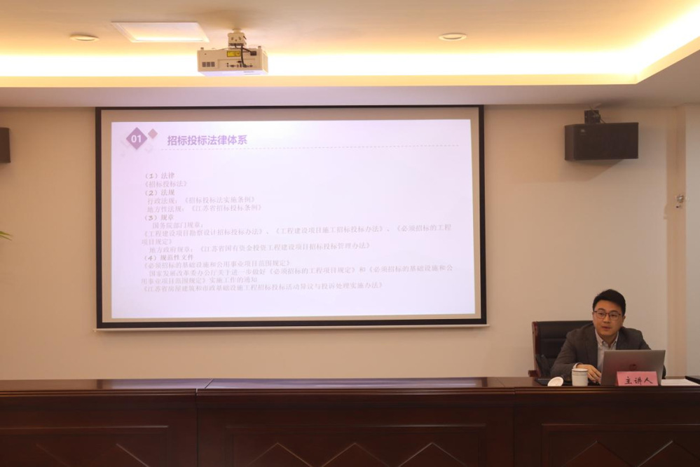 培训中,马远围绕《中华人民共和国招标投标法》《江苏省招标投标条例》等相关法律要求,通过“政策解读+案例分析+互动答疑”的形式,阐释了招投标管理的法律边界与操作规范,剖析了招投标管理的典型法律风险,并针对招投标过程中易出现的程序违规、串标风险、合同签订争议等实际问题,提出了切实可行的防范建议。