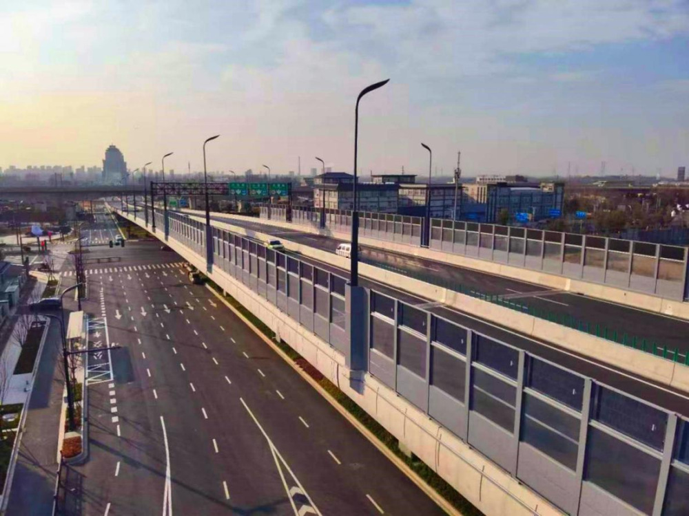 当银灰色的高架桥面车流不息,两侧3米高的弧形声屏障不仅守护着沿线居民的静谧生活,更在阳光照射下悄然将光能转化为电能——这是万福快速路东延生态科技新城段正在上演的“绿色魔法”。作为江广快速路的重要组成部分,这条刚刚实现通行的交通动脉,凭借声屏障光伏发电项目的落地,成为扬州首个“快速路网+新能源”融合试点示范项目,为城市绿色发展注入新动能。