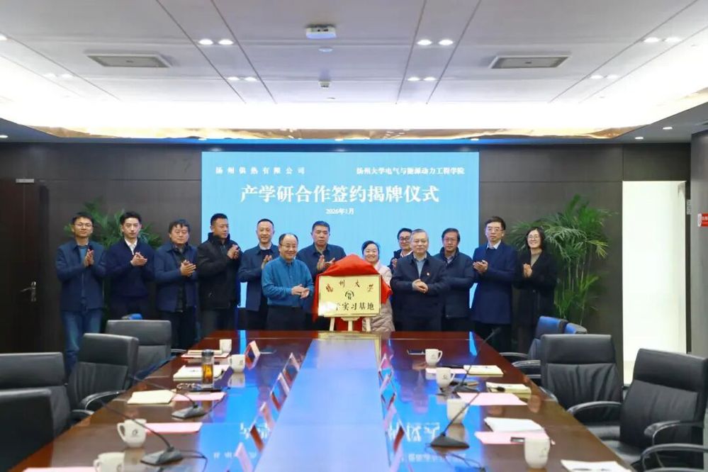 1月28日下午,供热公司与扬州大学电气与能源动力工程学院举行产学研合作签约揭牌仪式。扬州大学电气与能源动力工程学院院长杨华、党委副书记周敏、副院长李生权,城控集团副总经理、能源集团董事长孔德存,供热公司主要负责人及相关人员出席仪式。