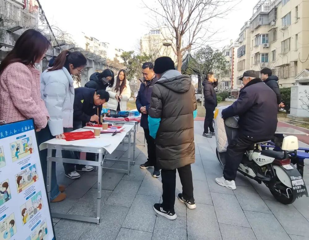 社区广场上,志愿者们热情地向居民发放安全宣传手册和小礼品,并耐心解答疑问。一旁的书法台翰墨飘香,扬州中燃公司的书法爱好者挥毫泼墨,书写承载美好祝愿的“福”字、春联赠送居民,获得居民广泛欢迎。