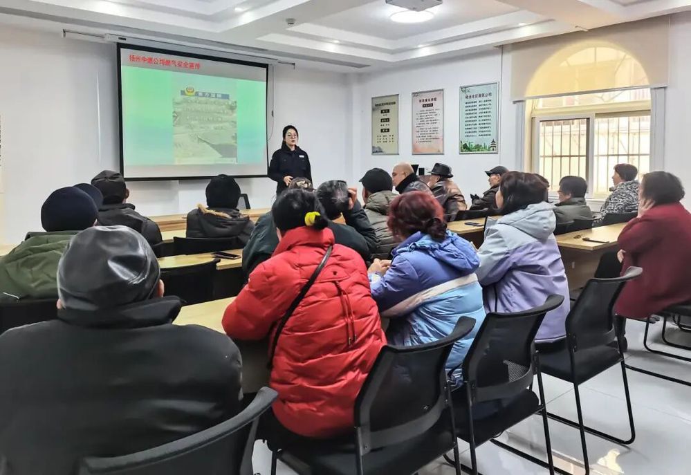 社区活动室内,宣讲员通过图文并茂的PPT,为居民带来了一堂生动的燃气安全知识讲座,详细讲解了日常用气注意事项、常见隐患识别、泄漏应急处置方法等关键知识,并为居民播放《别让“李鬼”进家门——燃气安检防骗指南》宣传片,进一步提高居民的安全意识与防骗意识。