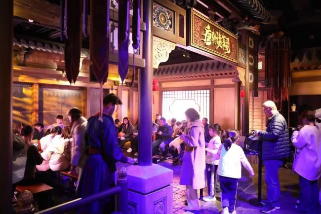 在这里,“沉浸式入戏”的独特玩法让不同年龄段的游客各得其乐。从《莲花楼》的江湖快意到《狂飙》的京海烟火,从《唐朝诡事录》的诡谲奇趣到《大话西游》的经典情怀,无论老少都在此找到专属快乐。现场既有阖家团圆的温馨时刻,也有情侣打卡的浪漫身影,就连90岁高龄的长者也慕名而来,亲身感受科技与影视碰撞的独特魅力。