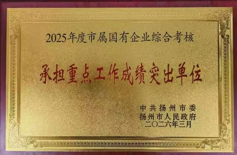 3月21日下午,扬州市委、市政府召开2025年度高质量发展总结暨2026年工作推进会议,通报了全市市级机关单位2025年度综合考核结果并进行表彰,扬州城控集团被评为2025年度市属国有企业综合考核“承担重点工作成绩突出单位”。