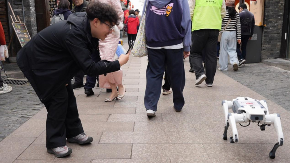 此次亮相东关街的人形机器人与机器狗,凭借灵动的互动表现和丰富的功能配置,成为游客打卡古街的“新宠”,更是串联起美食、商铺与景点的智能纽带,让千年古街的烟火气与科技感完美交融。