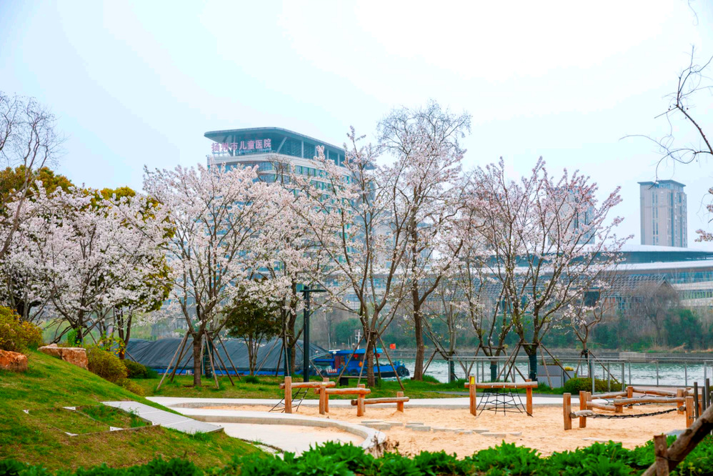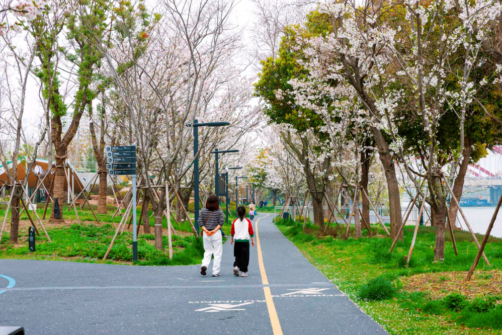 除了赏樱,“运河十里”示范段还精心布局了多元活动场景,既有跑步道、漫步道、儿童沙池等休闲空间,满足市民、游客春日踏青、亲子游玩等需求,更融入了爱奇艺乐园、洞穴咖啡厅、“禁止跳水”日咖夜酒等新业态,让春日时光既有自然赏味,也有现代意趣。